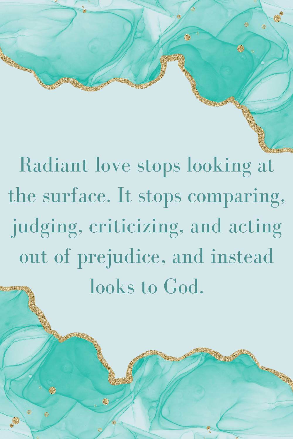 Radiant love stops looking at the surface. It stops comparing, judging, criticizing, and acting out of prejudice, and instead looks to God.