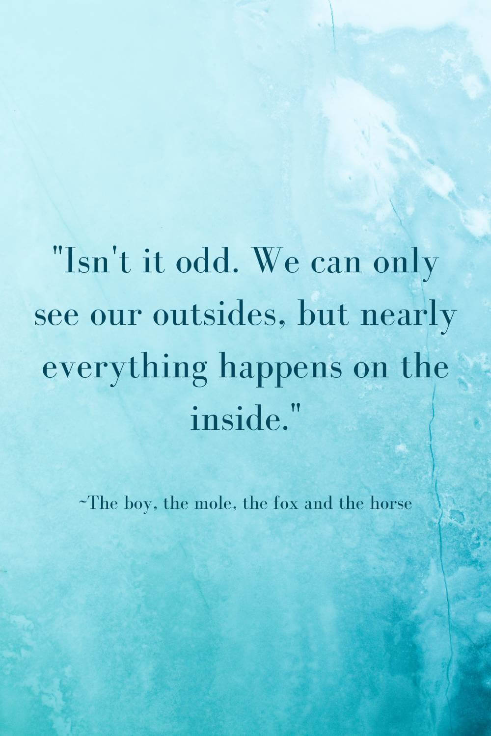 “Isn’t it odd. We can only see our outsides, but nearly everything happens on the inside.”